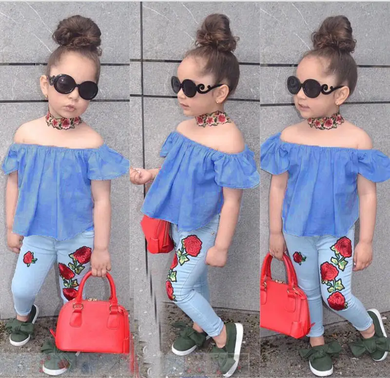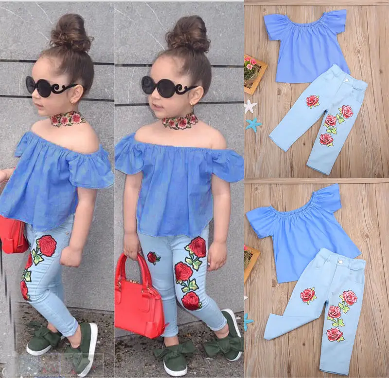Special Price for 2017 Fashion Newest Hot Children Girls Sets 2Pcs Tops+Long Pant Kids Baby Girl Outfit Off Shoulder