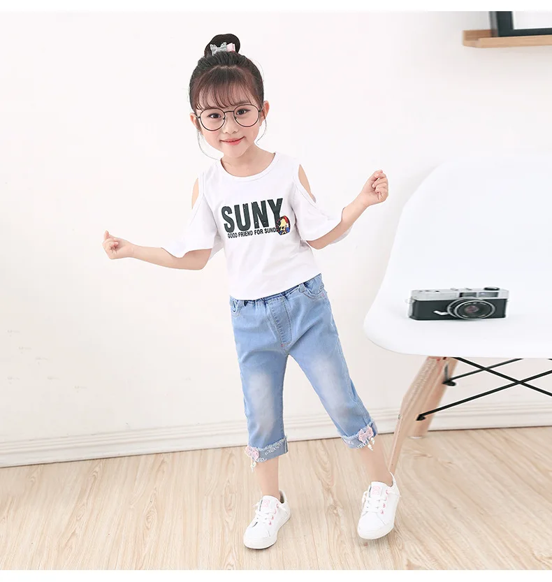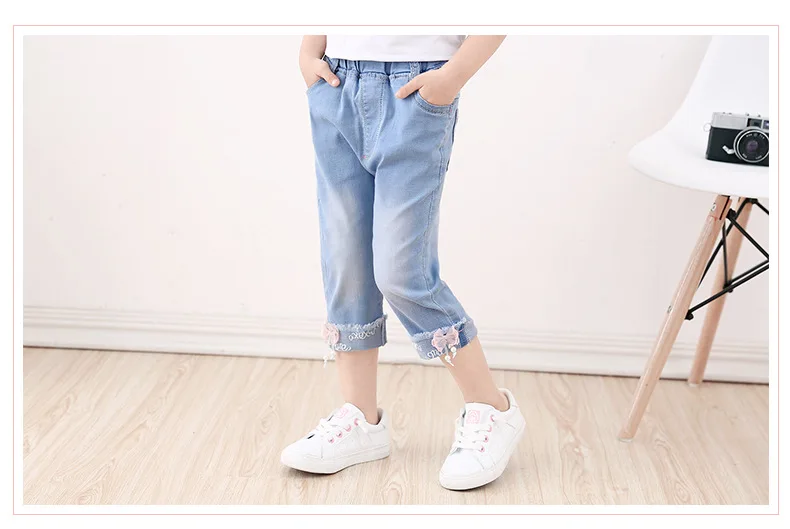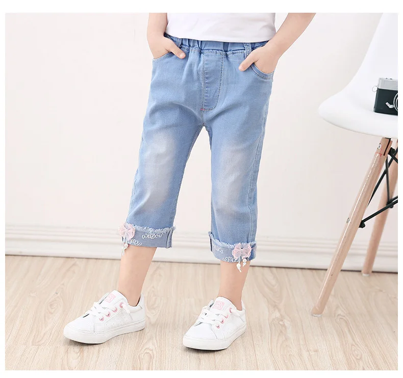 Best Price for Baby Kid Girl Denim Capris Pants Cotton Elastic Summer Casual Cuffs Calf-Length Jeans Pant Girls lo